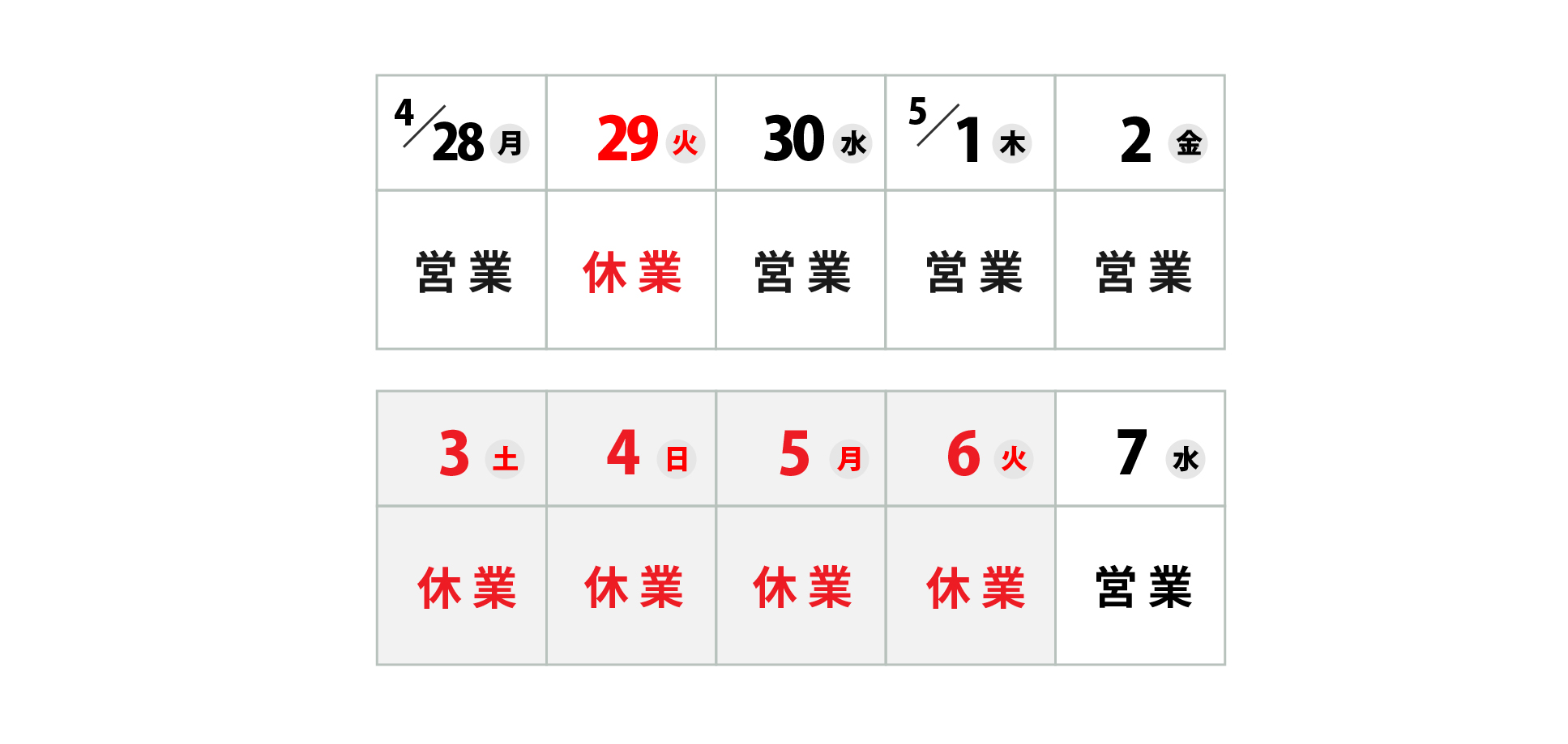 下記の【休業】期間は交換品の発送及びお問い合わせのご対応を休業致します。