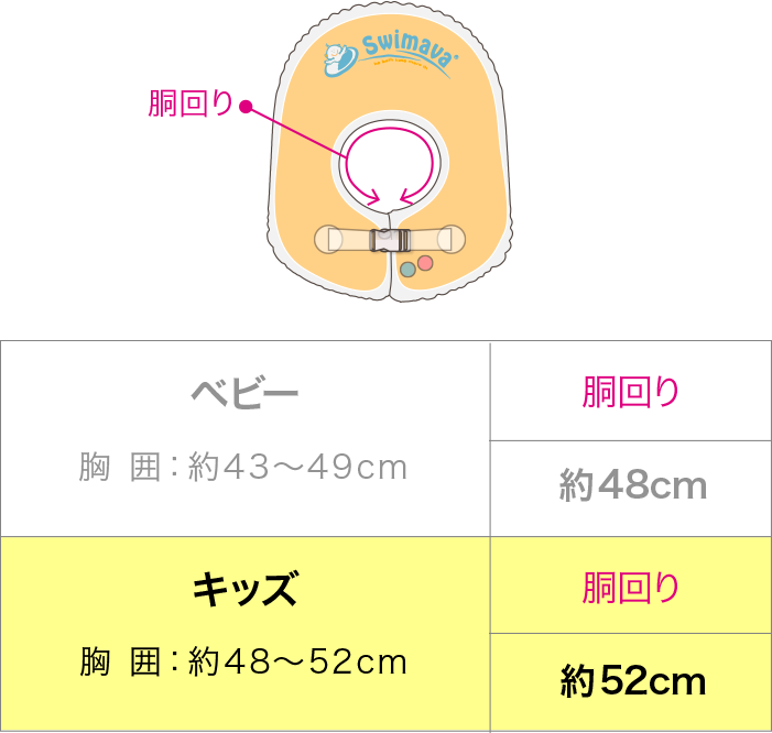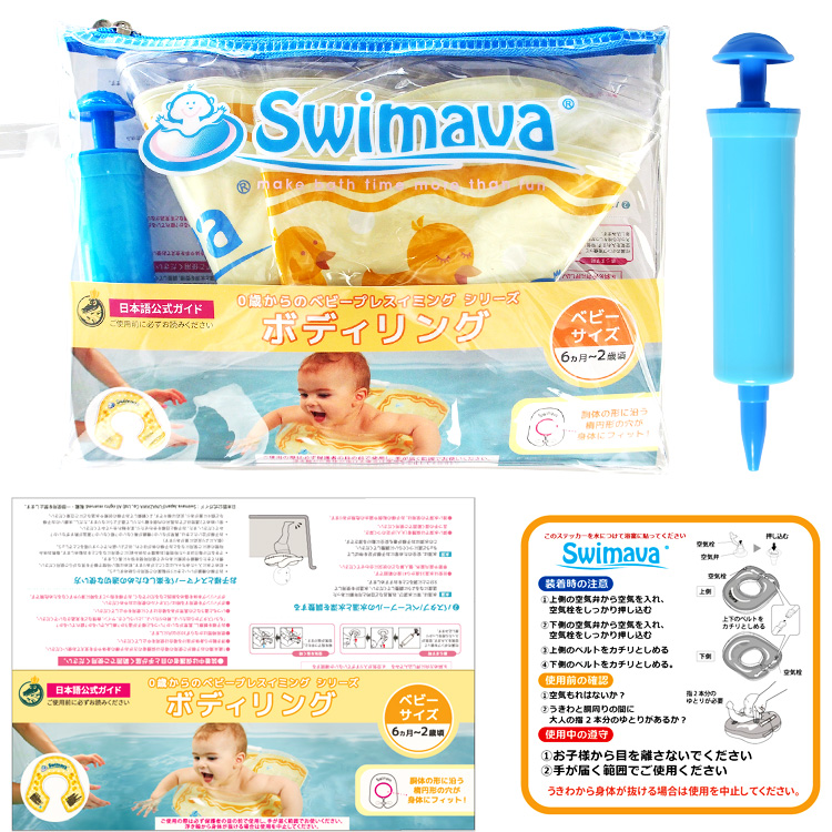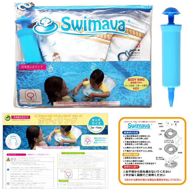 ボディリングは、お子様の脇の下にうきわをつけて身体を支えます。生後6ヵ月から使用できるベビー用&2歳からのキッズ用の2サイズ。首リング卒業後のお子様にも大人気です。スイミング練習のファーストステップとしてもおすすめです。