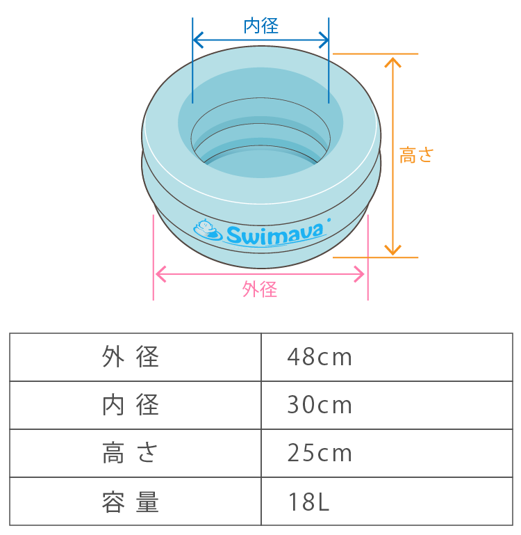 • ※記載のサイズは目安であり、誤差があります。又、空気の入れ具合によっても変わります。ご使用前には必ずサイズを確認しガイドに従ってお使いください。